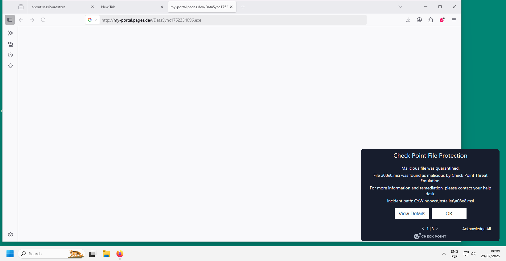 FAIL: The failure, i.e. a virus hasn’t been blocked and it has infected a system.