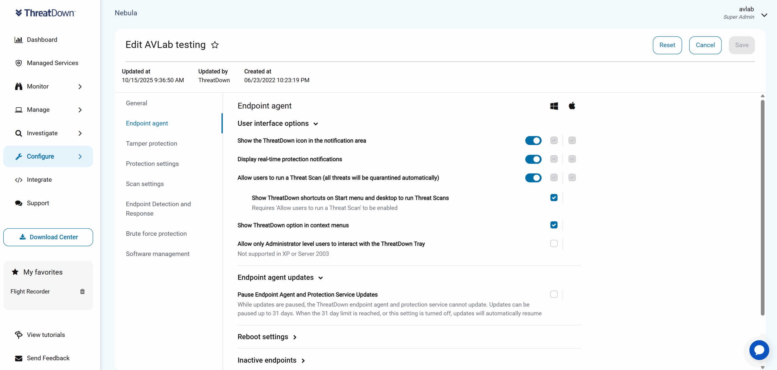 The ThreatDown interface and admin console are intuitive, allowing to quickly perform critical actions designed to threat hunting, incident remediation, and solving problems with configuration and security of devices.